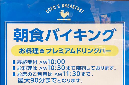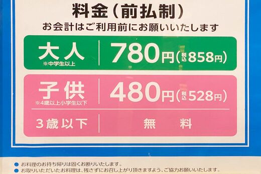 実施時間は朝の6時から10時30分(受付は10時)までで、利用時間は最大90分まで。料金は平日価格、大人税込858円、子供税込528円、3歳以下は無料という太っ腹ぶり。