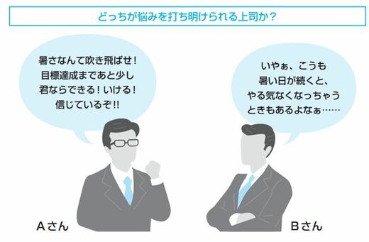 ただ、部下が自分の悩みや困っていることを率直に打ち明けられる上司は、以下の図にあるAさん、Bさんのどちらだと思いますか?
