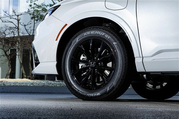 一般的なSUVは、凹凸のある悪路走行時に路面との接触を防ぐために、フロントオーバーハングが短めに設定され、フロントのアプローチアングルと呼ばれる対地障害角が大きくなっていることが多い。しかし、CR-V e:FCEVの実車を見た印象は、フロントノーズの長さが強調され、セダンやクーペのようにスタイリッシュかつスポーティな印象を受けた。さらにフロントグリルも北米仕様のハニカム構造から横に流れるようなフィン形状に変更されて都会的なスタイルが強調される。