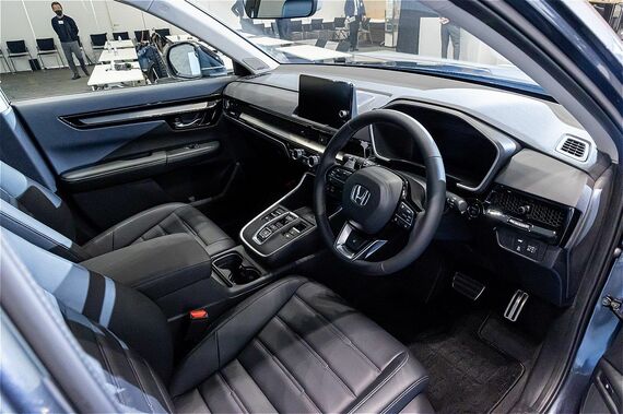 インテリアに関しては、水平基調のダッシュボードに、現行シビックなどでも用いられているハニカムメッシュパネルの採用など、基本的には北米仕様と同様となる。ただし、CR-V e:FCEVでは、環境に配慮したバイオ合皮をシートに採用し、サスティナブルな素材を盛り込んでいるところなどが異なる。さらに12個のBOSE高性能スピーカーも標準装備となる見込みだ。