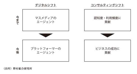 広告会社の業務は今後、大まかに「デジタルシフト」と「コンサルティングシフト」という方向に変革が求められるだろう。