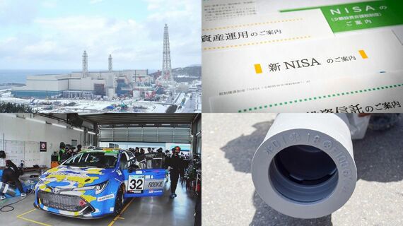 水道管の更新需要や新NISAなど年度替わりのタイミングは国策銘柄を仕込む好機でもある(写真は柏崎刈羽原発や水素エンジン搭載車など。左上=撮影:梅谷秀司、右上=PIXTA、その他=記者撮影)