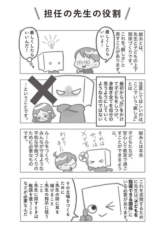 初任者教員は、横糸を張るのは比較的得意です。でも、仲良くなりすぎると「友達」になってしまいます。詳しくマンガにまとめていますので、参考にしてみてください。