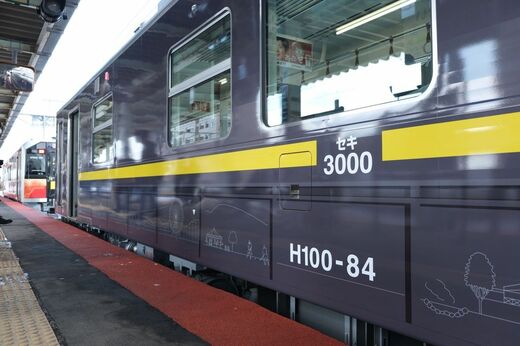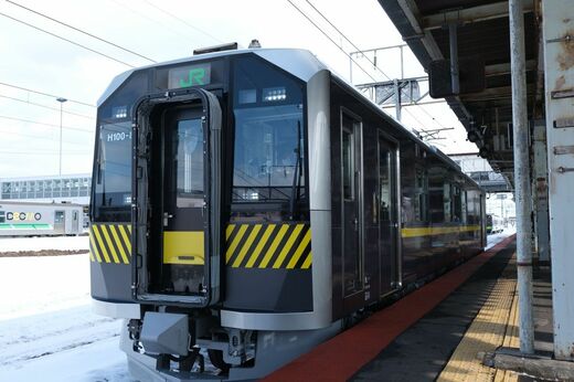 H100形ラッピング車両は、これまでも石北本線や釧網本線などの沿線風景を描いたデザインの車両が登場している。1両製造するためには約3億円の費用が必要で、これを国(鉄道・運輸機構)と北海道が折半して捻出。北海道高速鉄道開発株式会社が車両を保有し、JR北海道が同社から無償で車両の貸与を受けて運用するという仕組みだ。車体にも北海道高速鉄道開発の銘板が設置されているほか、車内に乗客にこれらのスキームを説明するステッカーが貼付されている。今回登場した車両も同様の仕組みで製造されており、内装はこれまでのラッピング車両と同一。定期運用のほか、イベント開催時などには観光列車としても使用できる。2023年度中に、根室本線および宗谷本線のラッピング車両も登場する予定だ。