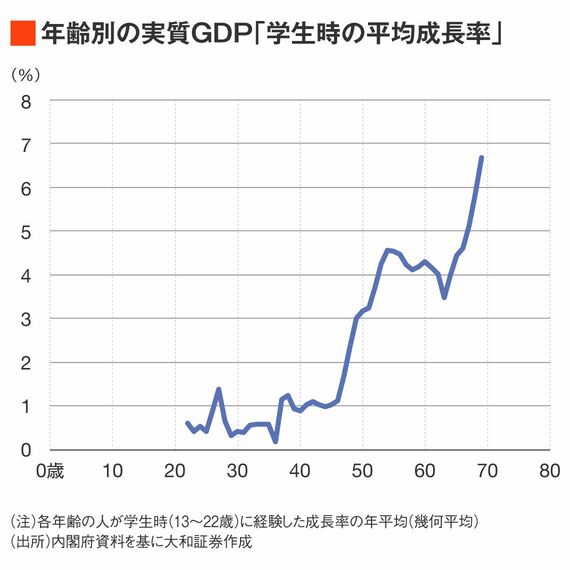 コロナ禍からの反動増による一時的な成長率の改善を除くと、年齢が低いほど低迷が続いていることがわかる。
