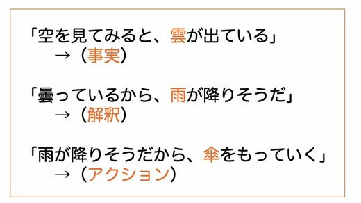 事実、解釈、アクションをきちんと区別し、