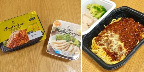 筆者も個人的に愛用している商品で、薄い塩味なのでそのままでもおいしく食べられます。パスタ単品での栄養不足も補い、食事のボリュームはアップしつつ、カロリーは抑えられるのもうれしいところ。両方ともトレー入り&電子レンジ調理商品のため、職場でのランチにも利用できます。