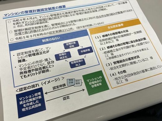 それゆえに管理計画の認定に当たっては、管理組合が主体性を持って管理を行っているかがチェックされる。例えば、長期修繕計画では、妥当な計画があるかどうかだけでなく、修繕積立金の残高が十分にあることも基準になっている。不足分を穴埋めするために、一時金の徴収や金融機関からの借り入れをしないといけないようでは認定を取れない。