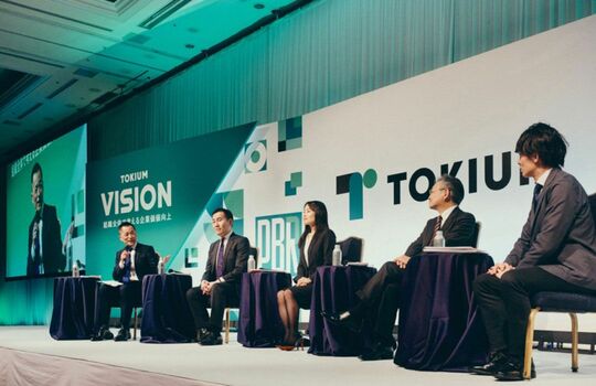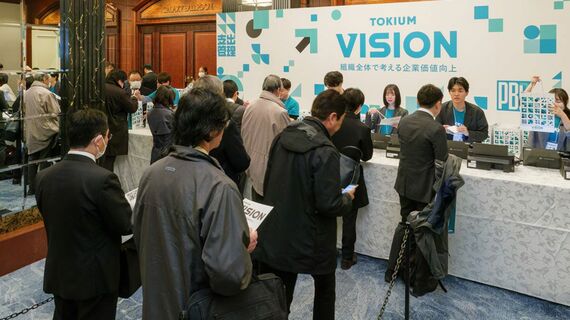 東京・恵比寿のウェスティンホテル東京。広さ1000平方メートル超の空間で開催された「TOKIUM VISION 2024」のオープニングには、TOKIUM代表取締役の黒﨑賢一氏が登壇。「情報提供を通じて、皆様の企業価値向上に貢献したい」と、TOKIUMが初めてのカンファレンスを開催した目的を伝えるとともに、「未来へつながる時を生む」という社名に懸けた思いを踏まえ、「志を持つリーダーを支えるために時を生むことが、よりよい世界へ変わることにつながると信じています」と語った。
