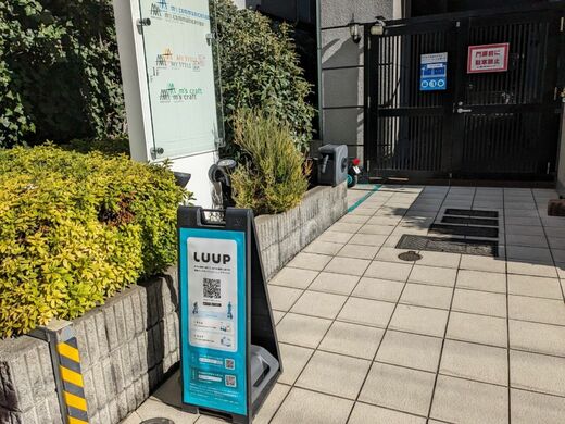こうして見ると、LUUPのポートは、ある種の「軒先ビジネス」のようなもので、マンションのちょっとした軒先などに1〜3台のキックボードや電動自転車を置いている場合が多い。