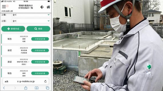 21年には「物件ポータルサイト」の運用も始まり、足場の点検や危険予知活動など、物件に関するさまざまなやり取りをスマートフォンのアプリで行えるようになった。