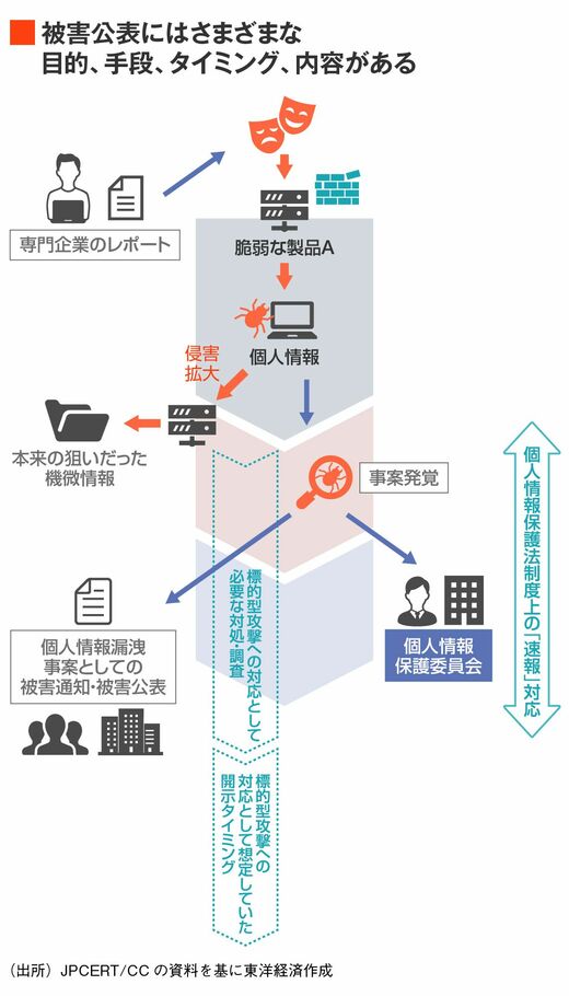 例えば、攻撃者の目的が、企業が持っている先端技術情報だったとしよう。ただ、侵害拡大経路で、たまたま個人情報が保存されていたシステムを経由したとする。