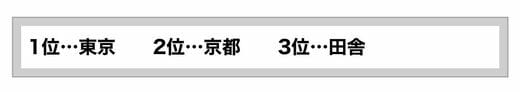 日本食を好んで食べるくらい日本に対して興味と愛着がある人に対しての質問に、返ってきた答えは「1位東京、2位京都」。そこまでは想定内だったのですが、3位はなんと意外な答え――「田舎」でした。