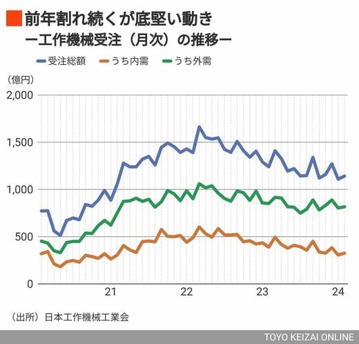 「四半期末の月以外は2023年5月以降、1100億円台の受注が連続しており、依然として緩やかな調整局面の中で底堅く推移している」(稲葉会長)