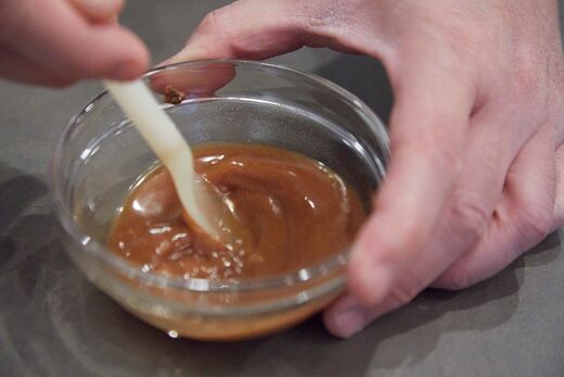 そこで、まず付属の粉末スープの半量を大さじ3の水で溶きます。残り半分はどうするんだって? お湯で溶いてスープとしてお楽しみください。
