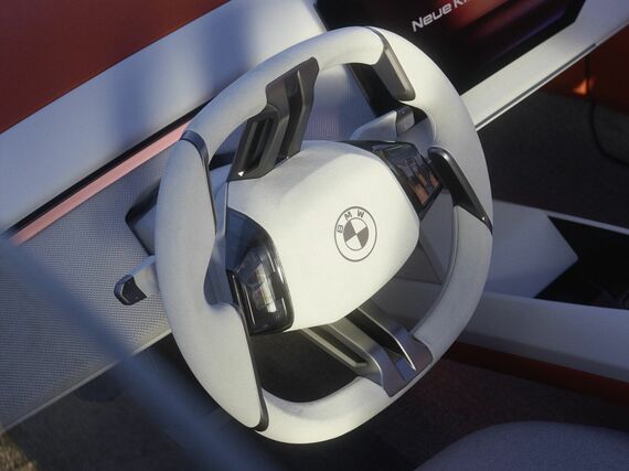 ビジョン・ノイエクラッセでは、ウインドスクリーンのほとんど端から端までを使う「パノラミックビジョン」を採用し、ウィジェットを多用してより機能性を向上させるとともに、より人間的になるという音声対話システム、それに「HYPERSONX」ステアリングホイールが新しい提案だ。