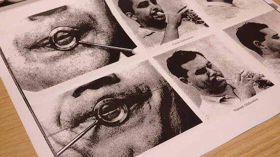 石田:デジタルツールに限らず、私が指導に行く際に必ず持っていくのが、ビジュアライザーといって、楽器を吹くときの唇の形(アンブシュア)を視覚的にチェックできる、円形の金属の中央に穴が空いた器具です。