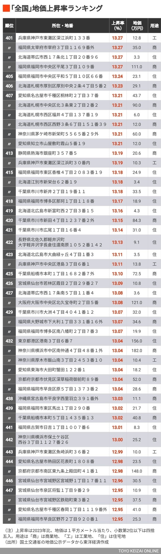 政治・経済・投資 20%超は29地点「全国地価上昇率ランキング500」 熊本がワンツー、10位内に北海道から4地点 3分で読める 公開日時:2024/04/12 05:00 東洋経済オンライン編集部 フォロー 1/11 PAGES 2/11 PAGES 3/11 PAGES 4/11 PAGES 5/11 PAGES 6/11 PAGES 7/11 PAGES 8/11 PAGES 9/11 PAGES 10/11 PAGES 次は401~447位 次ページが続きます 11/11 PAGES