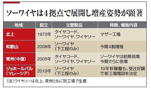 そのスチールコード事業では、現在、中国とマレーシアに工場を設けており、いずれも順調だ。中国は世界最大のスライスメーカーの集積地。マレーシアは電池産業への投資優遇策が豊富で、米ファーストソーラーや独Qセルズ、米サンパワーなど欧米の主要電池メーカーの工場進出が相次ぐ注目エリア。いずれも受注が伸び、急成長が続いている。