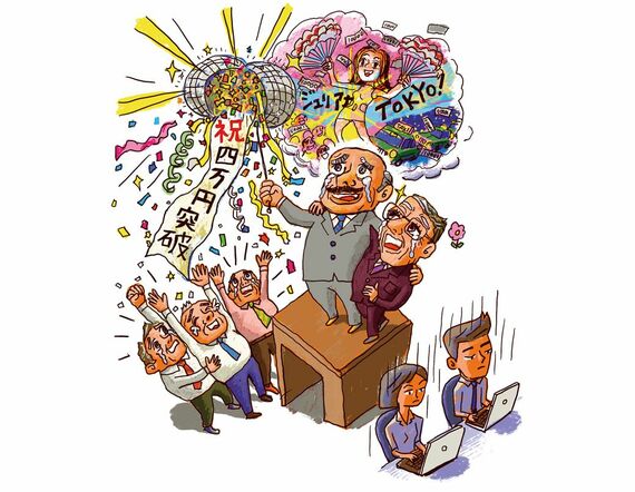 あれ、熱狂っつう感じじゃないな。そりゃそうだ。ベテランの幹部社員はバブルを知っているから涙を流すが、フロアにいる若い社員には「何のことやら」である。