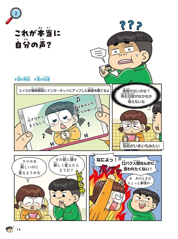 今、小学生の子どもたちに大人気、累計555万部を売り上げるサイエンス学習まんが『となりのきょうだい 理科でミラクル 食べ物☆天国編』より「これが本当に自分の声?」をお届けします。