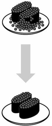 所持する時間ではやらないといけないことが受け止めきれず、ボロボロとこぼれ落ちている。多忙な人もこぼれイクラも「余裕がありません」。ちなみに、時間に対して適切なTODOリストであれば、イラストのようなイメージでしょうか。ちょうどいい具合に軍艦の上にイクラが乗っています。