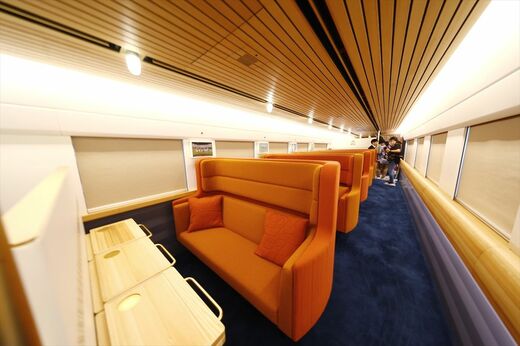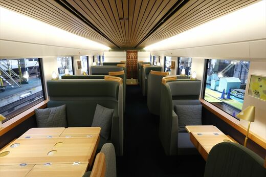 こうして完成した車両のデザインは、これまでのJR九州の車両とは明らかに違っていた。水戸岡デザインの車両を「豪華絢爛」と言い表すなら、新たな観光列車は「洗練」という表現がぴったりくる。それを八幡社長は「ナチュラルモダン」と評する。「私たちがデザインしたというよりも、JR九州の各部署の方々と数十回も会議をして、古宮社長にも何度も足を運んでいただいて完成したデザインです」。