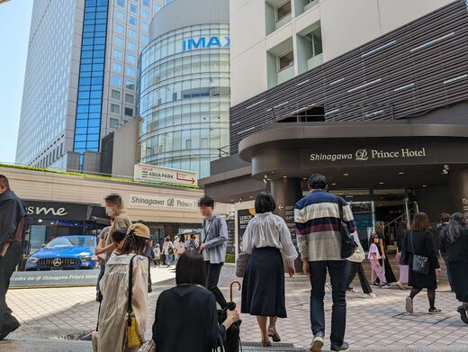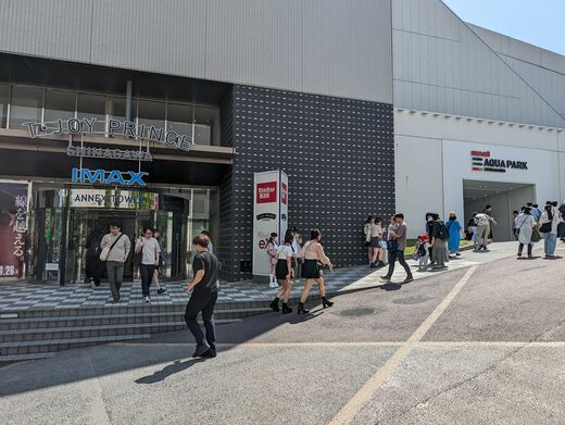 水族館「マクセル アクアパーク品川」に映画館の「T・ジョイ PRINCE品川」といったハコモノがあり、品川プリンスホテルにボウリング場もある。休日ということもあって人けがまばらな港南口と全く違い、大いに賑わっていた。