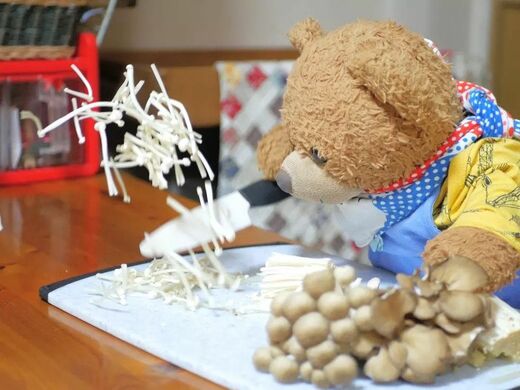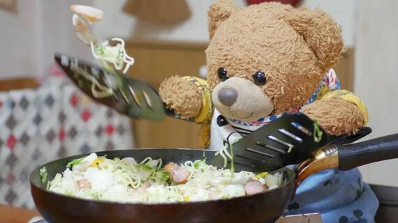 くまのぬいぐるみが、鮮やかに料理するコマ撮り動画をご存じだろうか? レパートリーは広く、肉巻きの厚揚げ、味噌汁、パスタ、シュウマイ、チョコクロワッサンなど、何でもござれ。くまの指先は使えず腕は短いが、菜箸やへらを器用に操り料理していく。食べようとする場面で終了する動画もある。エンターテインメント性も高く、見る人を飽きさせない。