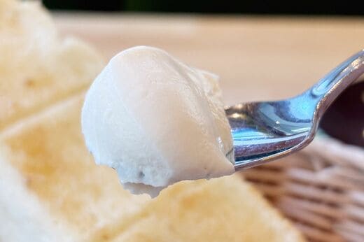 水切りヨーグルトを食べるとヨーグルトのうま味が凝縮されておいしいように、クリーム状の豆乳も美味です。4枚切り食パンよりも厚みがあるという、コメダの食パンにたっぷりと塗って食べれば、大満足。