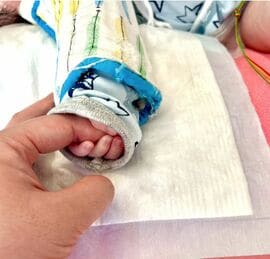 帰り際、「よかったら、おもちくんに触ってあげてください」と声をかけていただいた。しほさんと孝輔さんに愛おしそうに見つめられた未来くんの小さな手を握る。