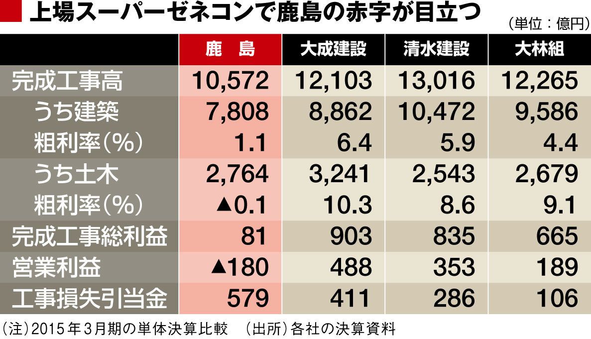 ──2015年3月期の単体決算は赤字。その中身は土木、建築ともに赤字という厳しい結果だった。