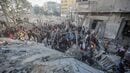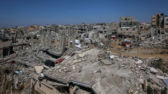 ガザ地区ハーンユニス中心部で破壊された家屋(写真:Ahmad Salem/Bloomberg)