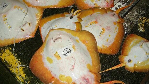 重要な水産資源の二枚貝を食い荒らしているエイ類については、自治体によっては補助金を出して駆除している。エイ類は尾ひれに毒針があり、食用のイメージもなく、アンモニア臭がするので、エイヒレを除けば、一般のスーパーや外食で見かけることはない。