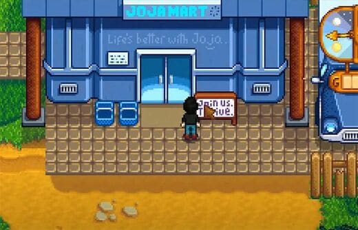 町の中心から少し外れたところには、田舎町に似つかわしくはない都会のスーパーマーケットの姿も見えます。このスーパーは「Jojaマート」という名前で、以前主人公が勤めていた企業です。