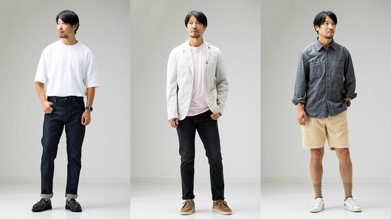 では、プロのワザを見てみよう。「大人のきれいめカジュアル」を得意とするスタイリストの栃木雅広さんに、夏の定番アイテム「白Tシャツ」「ショートパンツ」「カジュアルジャケット」それぞれを使ったスタイリングを組んでもらい、着こなし術を解説してもらった。
