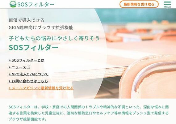 OVAでは、死にたい気持ちを抱えている児童生徒に対し、プッシュ型の情報発信をするブラウザ拡張機能「SOSフィルター」も開発している。