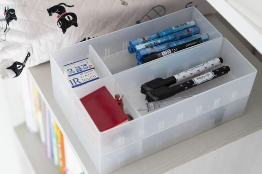 「たとえば無印良品のボックスは、収納力の面でみると“四角い形”が特徴的。下部が狭くなっていたり丸くなっている形に比べて入れやすいし、収納量も増えますよね。また、ボックスに限らず汎用性があり、生活スタイルが変わってもほかの用途で使えるのも利点です」