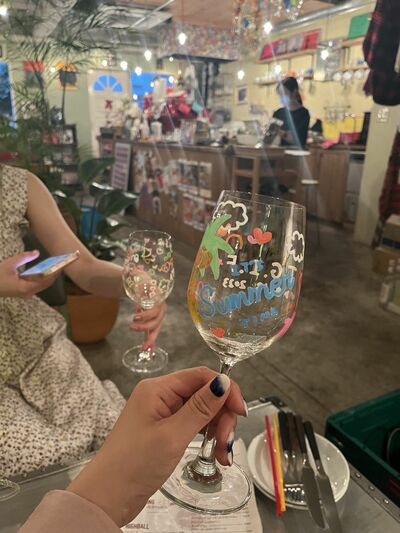 2021年頃から韓国で流行していたのが、ワイングラスに自分で落書きができる飲食店です。その流行が今年、日本にも入ってきています。韓国ではワイングラスが主流ですが、日本では普通のグラスにもPOSCAなどのカラフルなペンを使い、落書きができるカフェが増えてきているのです。