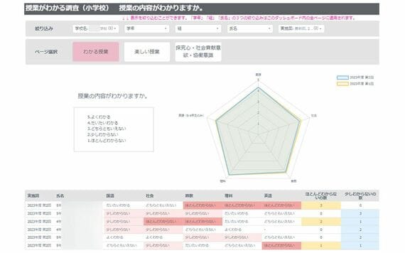具体的には、2023年12月からダッシュボードを市内の18の公立校(小学校12校、中学校6校、計約1万2000人の児童生徒を対象)に連携し、現場でのデータ活用を推進した。