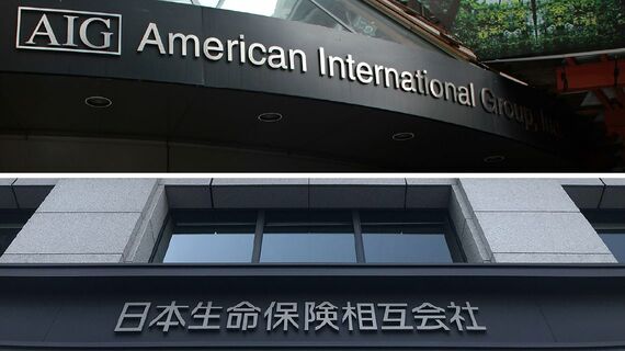 米AIG傘下の生命保険会社、コアブリッジへの出資を発表した日本生命(写真上:Getty Images、右:編集部撮影)