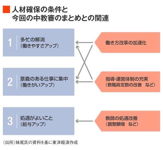 働き方改革、教職員定数の改善、処遇改善の3本柱