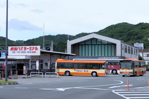 駅前は、独鈷の湯(とっこのゆ)で知られる修善寺温泉方面のほか、湯ヶ島温泉口・浄蓮の滝・天城峠・河津七滝(ななだる)など「天城越え」を経て河津駅に至る路線バスの乗り換え拠点でもある。東海バスは自転車を前面に載せられるサイクルラックバスも運行している。