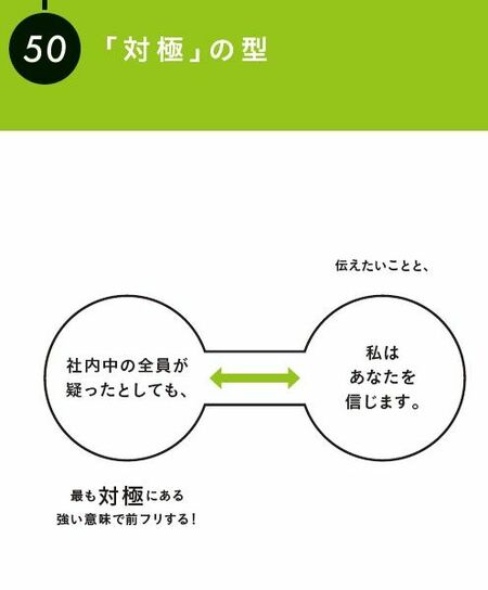 あえて違う方向に意識を向けて、本来伝えたいことを意外性をもってぶっ込むイメージです。