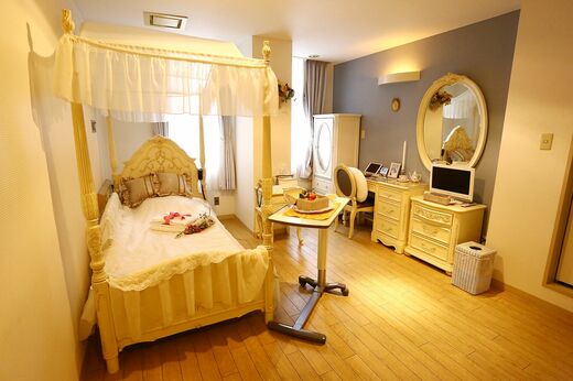 食事は一般病棟と同じだが、キッチンで簡単な食事を作れる。バスタブ付き浴室、入院患者の秘書などのための控え室もある。照明は控えめで、採血などのときにはベッドの上の処置灯を付け、明るさを確保する。