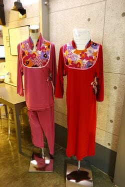 ジャージのような柔らかい素材でできた患者衣で褥瘡(じょくそう、床ずれ)を予防。高齢者の顔色がよく見える色合い(撮影:今井 康一)