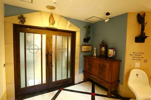 一方、別フロアにある療養病床は、修道院をイメージした神聖で穏やかな雰囲気。体外からチューブを通して流動食を摂る人や、寝たきりのような、要介護度が高い高齢者が入院している。