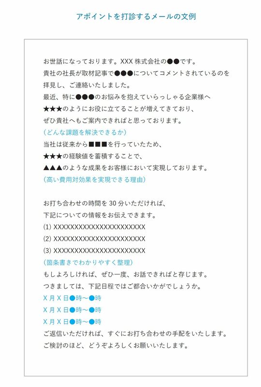 そこで、メールの文面に「アタリの営業」である根拠を感じさせる要素を入れましょう。すなわち、「どんな課題を解決できるか」と「高い費用対効果を実現できる理由」です。