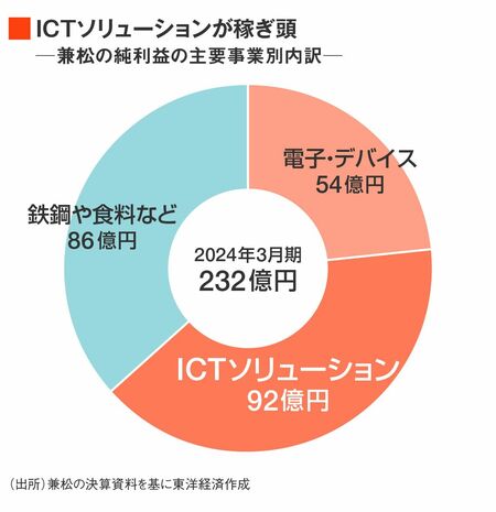 2024年3月期における兼松のICTソリューション事業の純利益は92億円だった。今年4月から始まった中期経営計画では、最終年となる2027年3月期に140億円程度にまで拡大させる考えだ。