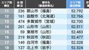 4位以降では魚津市(富山県)や駒ヶ根市(長野県)など、比較的人口の少ない市が上位となる特徴が見られた。